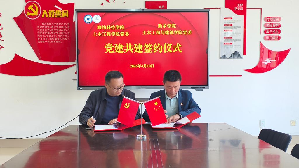 在潍坊科技学院,土木工程学院党委书记刘增武介绍了学院在夯实基层党建、以党建促教学、促就业、促服务地方方面形成的鲜明特色。双方围绕如何将党建活力转化为育人动力和发展实力,特别是在推动党建与土木工程专业转型升级、学生专业技能竞赛、实习实践、就业创业指导深度融合等方面开展了深入交流。为进一步筑牢基层战斗堡垒,以高质量党建引领学科高质量发展,实现资源共享与优势互补,双方隆重举行了党建共建签约仪式。