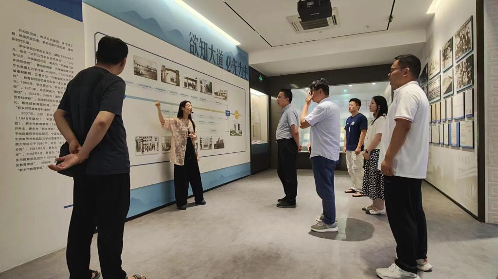 在讲解员的倾情讲解下,大家通过追溯学校发展历程,深入了解学校自1949年建校以来,各个重大时间节点发生的重大事件,全方位领略学校党的建设、教育教学、科研成果、校园文化等发展历程。一幕幕满载历史回忆与成绩的画卷呈现在教师们面前,使他们详细了解了新院人拼搏奋进、砥砺前行的历史,内心深处产生了作为新院人的骄傲和自豪。