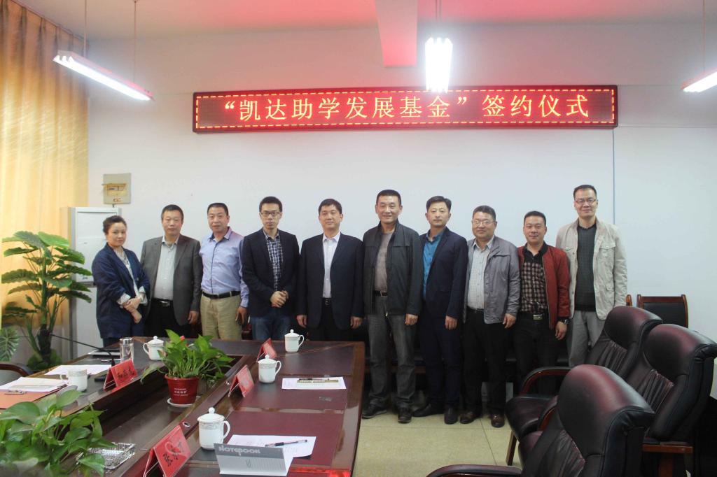 4月26日下午,在A09号楼土建学院会议室,河南凯达建筑有限公司与WilliamHill威廉希尔正式签约设立“凯达助学发展基金”。河南凯达建筑公司董事长王志伟先生,总经理刘国伟先生,土建学院党政领导,在凯达工作的我校历届校友,相关教师与学生代表参加了签约仪式。