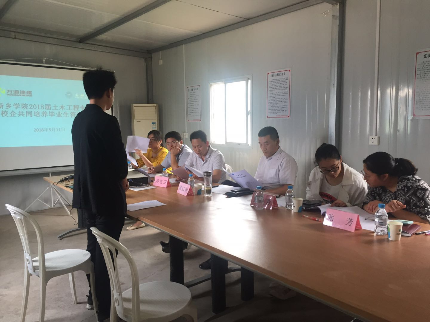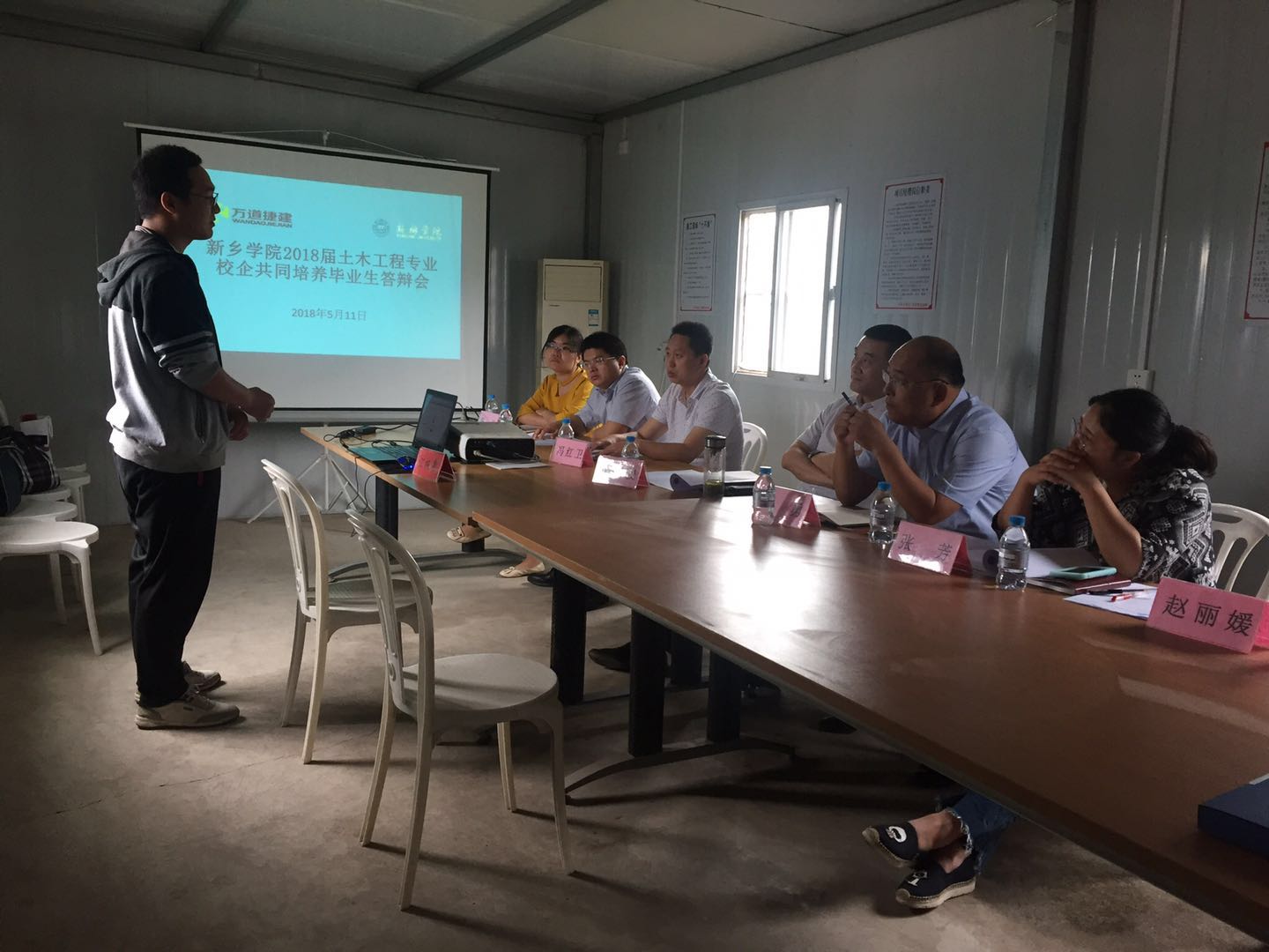 5月11号由我院党总支书记黄家骏带队,土木工程教研室冯红卫、张利伟、陈凡、赵利媛等5位教师,一行前往河南万道捷建股份有限公司,对在该公司设计部、质检部、工程部等部门的11名学生进行毕业(论文)设计答辩。河南万道捷建股份有限公司是集研发、设计、制造、钢结构加工及安装于一体的现代化钢结构装配式建筑企业。我们此行得到了公司的高度重视,并委派该单位设计部经理张芳参加了我们的答辩组。答辩会在河南万道捷建股份有限公司项目部会议室进行,历时五个小时,11位同学全部通过毕业答辩。最后河南万道捷建股份有限公司书记刘勇代表公司做了总结发言,祝贺同学们顺利通过答辩,也期望我们的合作能越来越深入。