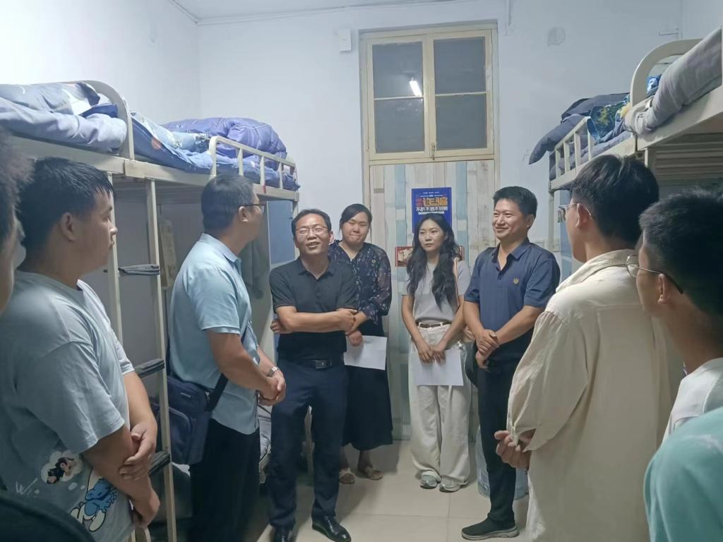 为了让新生们感受到温暖、舒适的宿舍环境,以积极、健康的心态迎接新学期的学习生活,2023年9月11日,我院党委书记汤沛、院长潘林、党委副书记袁大伟、学工办主任王晓冰、团委书记许玲玲和新生辅导员老师牛萌、邹海帆深入新生宿舍,慰问2023级新生。