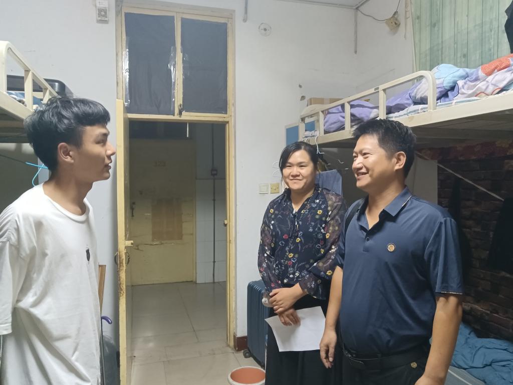 在走访过程中,各位老师与新生亲切交流,叮嘱新生们初入校园要提高安全防范意识,确保人身财产安全,谨防诈骗,遇到困难要第一时间与老师联系沟通。同时也勉励新生,要尽快适应大学生的学习节奏,养成良好的学习生活习惯,潜心钻研技术,争取在专业上取得长足进步。面对新生,辅导员老师们也对学生提出要求,要严格遵守学校的各项规章制度,严禁使用违禁电器,并希望学生团结友爱,与同学间要互相帮助、彼此关照,共同解决生活与学习中遇到的问题。