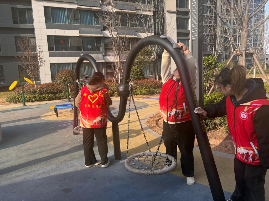 抵达志愿地点后,同学们迅速分成三组,积极投入到各项志愿服务工作中。一组同学负责规范小区停车秩序,他们齐心协力,将推不动且上锁的车辆抬至停车场,成功疏通道路,方便居民出行。另一组同学来到儿童乐园,拿起清洁工具,对游乐设施进行全面清洁,擦拭设备、清扫垃圾,为孩子们营造干净整洁的游乐环境。与此同时,为了更好地宣传雷锋精神,最后一组同学们精心组织了一场小知识问答活动。通过与居民们的互动,大家在轻松愉快的氛围中了解了雷锋精神的内涵,进一步加深了对这一伟大精神的理解。居民们积极参与,答对者可领取一份精心准备的小礼品,现场洋溢着欢声笑语。活动结束后,同学们分享感受,表示通过此次活动体会到了奉献的快乐,深感成就感。最后,全体人员合影留念,定格这一意义非凡的时刻。