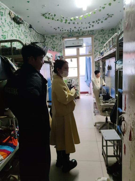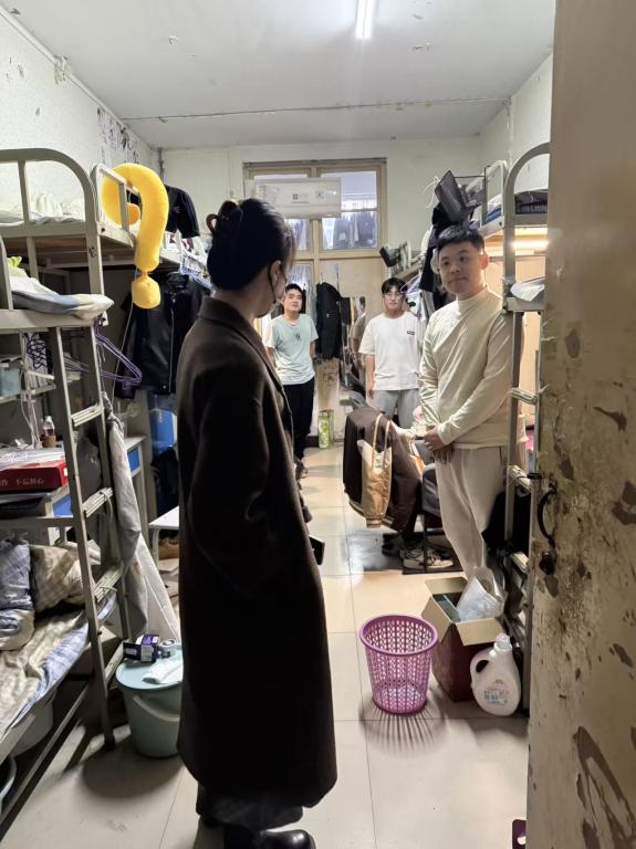 当每到一间宿舍,她们先与学生亲切寒暄,询问生活状况,叮嘱学生在实习求职期间劳逸结合、注意宿舍用电安全。交流中,两位辅导员重点关注毕业生实习与就业情况。银浩然针对已实习学生,逐一了解实习单位性质、岗位匹配度及实习收获,倾听学生困惑并提供职业发展建议,鼓励学生珍惜实习机会积累经验。杨晓玥则聚焦未确定实习单位或仍在求职的学生,了解其求职进展与方向,记录求职需求。她现场分析土木、建筑行业就业形势,推荐招聘平台与岗位,并结合学生专业优势,指导优化简历、梳理面试思路,助力提升求职竞争力。