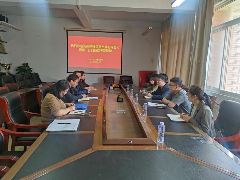 2024年4月18日上午,河南新投信息产业有限公司协下属子公司领导一行4人莅临WilliamHill威廉希尔进行校企交流。土建学院院长潘林,建环教研室主任杨卫芳,相关专业教师参与交流座谈。