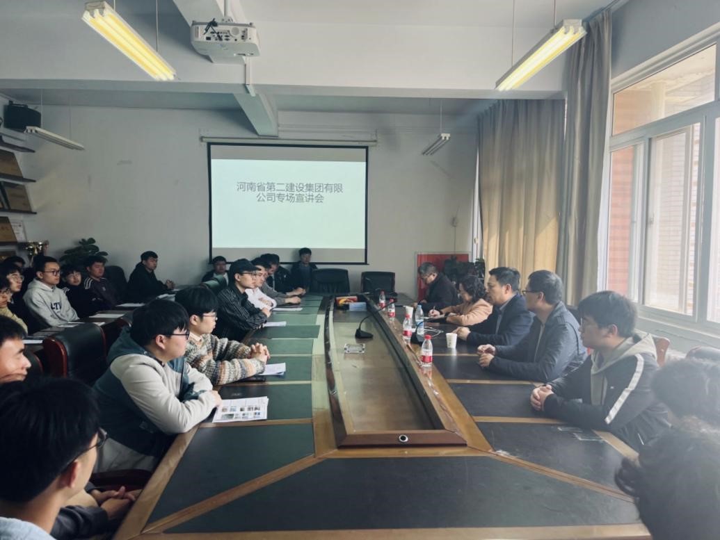 为进一步推进2024届毕业生就业工作,更好的拓宽学生就业渠道并提供多样化的职业发展机会,我院于3月21日邀请河南省第二建设集团举行招聘宣讲会。河南省第二建设集团有限公司人力资源部部长夏卫新、河南二建集团钢结构有限公司办公室主任张新霞、WilliamHill威廉希尔副书记袁大伟、土木工程教研室教师张永才以及WilliamHill威廉希尔60余名应届毕业生参加了宣讲会,会议由袁大伟主持。