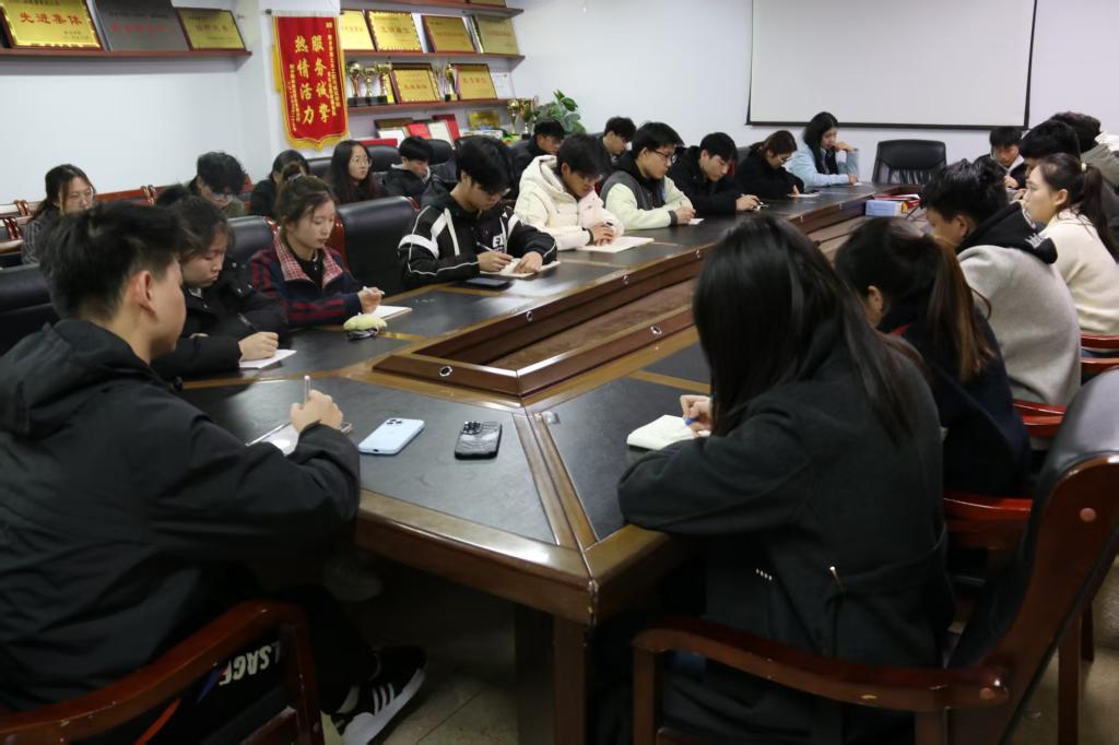 会议伊始,宋紫阁书记发表重要讲话,深刻阐述学生会工作的重要意义。她强调,全体学生会成员要始终在思想上与党的方针政策保持高度一致,积极传播正能量,努力打造精品活动,不断提升学生会的凝聚力与影响力,为学院发展贡献青春力量。随后,宋书记针对各部门工作进行详细指导与规划:组织部需紧密把握团员思想动态,精心策划各类活动,切实提高团支书的思想引领能力;媒体宣传部要积极宣传正能量,精准把控舆论导向,为学院营造良好氛围;实践发展部要精心策划并组织实践活动,着力提高同学们的社会责任感与实践能力;学风建设部要扎实开展学风活动,强化纪律意识,助力优良学风建设;权益创新部要做好卫生监督工作,为同学们营造舒适的学习环境;文体活动部要全力筹备接下来的篮球赛和运动会,丰富校园文化生活;综合事务部要充分发挥协调作用,确保各部门工作顺畅推进。各部门要各司其职,协同配合,共同推动学生会工作迈向新台阶。