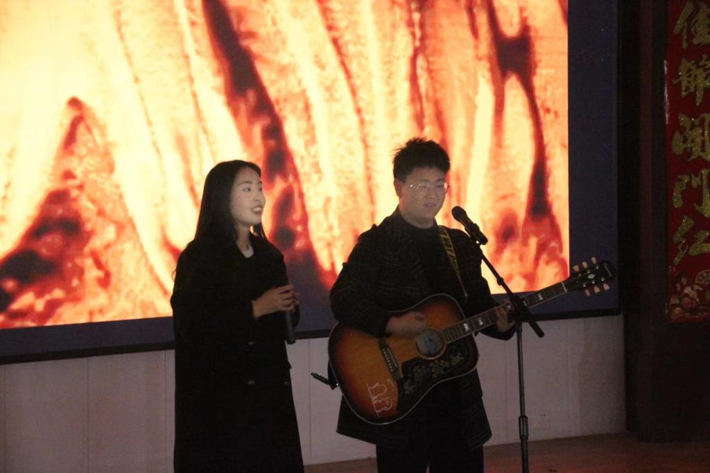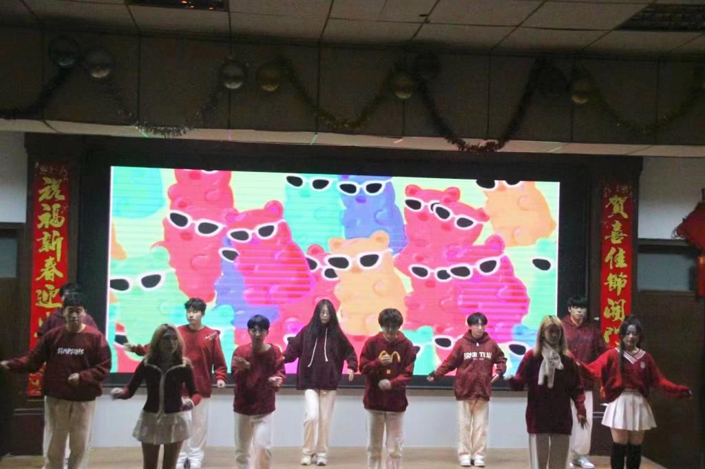 整场晚会形式丰富,节目涵盖了歌曲、舞蹈、小品等多种类型,为观众朋友们带来了一场视听盛宴。开场舞《good time》以欢快的舞蹈展现出青春的活力;歌曲《路过人间》以歌中的故事体现了人们不屈不挠的精神;小品《蛇我其谁》以诙谐幽默的语言讲述了平安的背后是无数无名英雄的守护……整场晚会精彩纷呈、高潮迭起,引得台下阵阵掌声。值得一提的是,晚会还特别安排了互动环节,通过游戏让同学们参与其中,共同感受节日的欢乐氛围。最后,一首吉他弹唱歌曲《后来》表达了同学们对未来的无限期望,为此次晚会画上了圆满的句号。