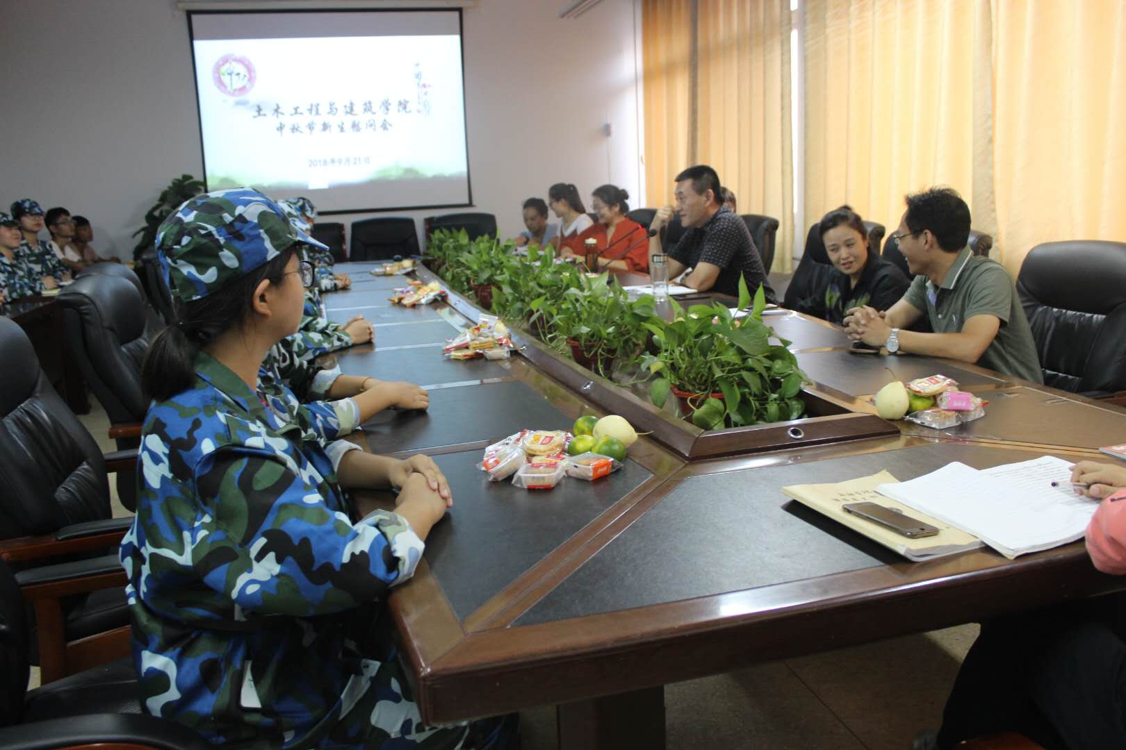 桂香千里,中秋意浓! 9月21日下午3点,WilliamHill威廉希尔在学院会议室召开迎新慰问座谈会。学院领导、老师与18级新生共度佳节,共话人生,送达学院最真挚的祝福,让远离家乡的学子们体会到家的温暖和关怀。出席慰问座谈会的领导有土建学院党总支书记黄家骏教授、党总支副书记和存龙老师 、副院长马芸副教授、副院长潘林副教授及全体辅导员老师。座谈会由团总支书记毛戎老师主持。