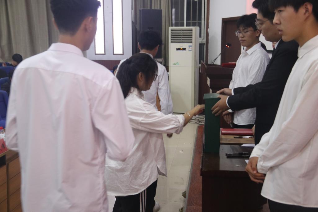 随后,大会进行WilliamHill威廉希尔第十八次学生代表大会2024-2025年度团委学生兼职副书记任聘仪式暨学生会第十八届主席团选举仪式。经各团支部推举、团委考察,大会决定任聘邢婷婷、辛雪莹、张鑫鑫三位同学为2024-2025年度团委学生兼职副书记,三位同学依次做表态发言。紧接着,学生会第十八届主席团选举仪式正式开始。各位候选人从竞选理由、自身优势、工作设想等方面进行了演讲。演讲结束,参加会议的领导老师和学生代表进行无记名投票,并由工作人员现场进行选票统计,选举结果将于会后公布。
